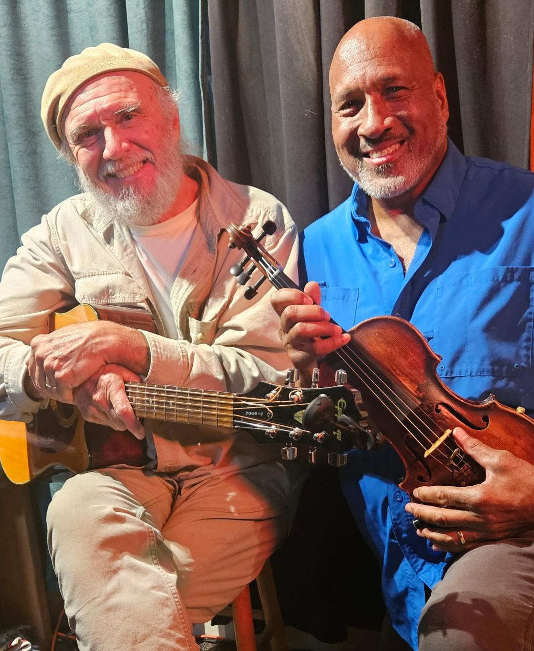 Jim K, singer-songwriter and founding member of the group FAT, has been honing his craft and performing for decades as a soloist and also with his own power trio. He has shared the stage with everyone from Jimmie Vaughn and the Fabulous Thunderbirds to Muddy Waters, Steppenwolf and Paul Butterfield. Jazz Violinist David Eure has performed with Jaimoe (Allman Brothers), Yusef Lateef, Ran Blake, Burt Teague, Rick Danko (The Band) and has opened for Kirk Whalum. Both Jim and Dave, independently, shared the stage with Taj Mahal. Eure powerfully bridges the classical and jazz/blues divide while transforming his violin into a deep soulful human voice. This East MA meets West MA acoustic show is NOT to be missed. Together they are lightning in a bottle.