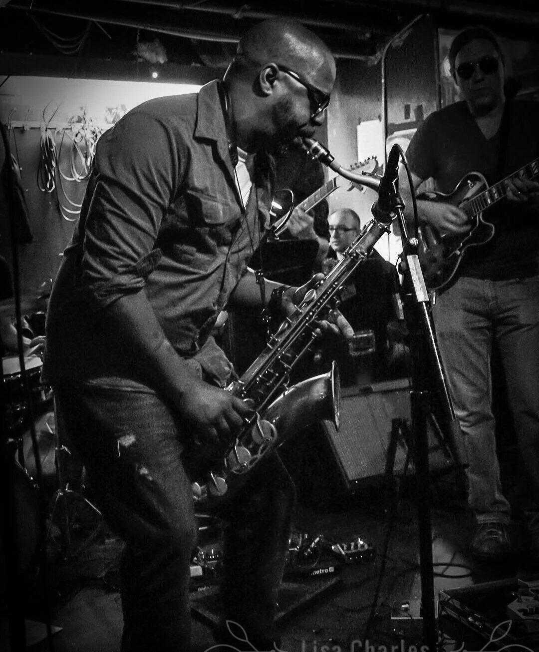 Mike Kolodny on Sax, Lincoln Allen on guitar and Aaron Nebbia on upright bass